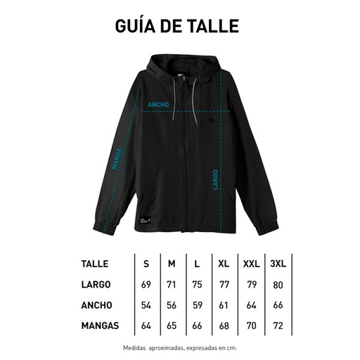 ◦ Cirée opaco pesado con tratamiento de repelencia al agua 100% poliéster. ◦ Ferrería interna de red. ◦ Cierre termosellado. ◦ Capucha con cordón reflectivo. ◦ Bolsillos delantero. ◦ Puños elásticos.