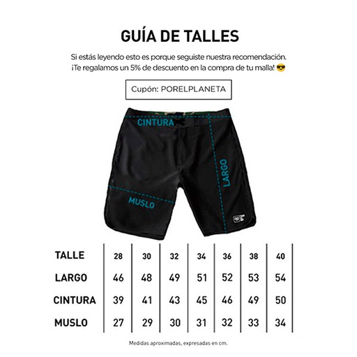 ◦ Malla con cintura rígida con cordón de ajuste y velcro. Confeccionada en Microfibra 4 Way lisa y sublimada con estampado original en cintura interna, cuenta con protección UV+50 y secado rápido, aumentando la eficiencia en el agua y durabilidad de la prenda. Estampa en delantero a un color. ◦ Bolsillos laterales. ◦ Fit 19". ◦ Composición: 96% Poliéster 4% Elastano. ◦ Producto nacional.