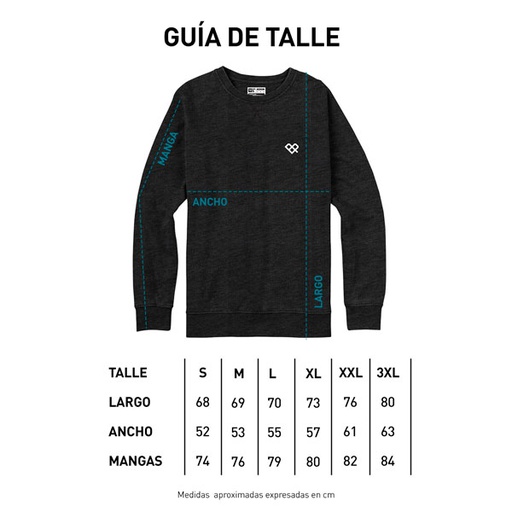◦ Buzo cuello redondo de frisa esmerilada y gamuzada. Tacto suave. ◦ Estampa a 1 color en frente y espalda. Tinta con base soft. ◦ Cuello, puños y cintura de ribb complemento. ◦ Etiquetas de marca tejidas. ◦ Composición: 50% Poliéster 50% Algodón. ◦ Fit regular. ◦ Producto nacional.