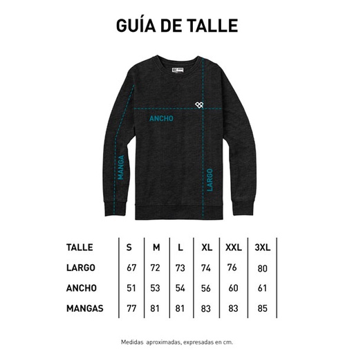 ◦ Buzo cuello redondo de frisa esmerilada y gamuzada. Tacto suave. ◦ Cuello, puños y cintura de ribb complemento. ◦ Etiquetas de marca tejidas. ◦ Composición: 50% Poliéster 50% Algodón. ◦ Fit regular. ◦ Producto nacional.