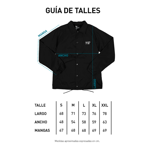 Rompeviento - 100% poliamida en exterior, 100% poliuretano en interior. Ripstop con milki. Impermeable, 2000mm h2o. Snaps metálicos. Estampa a un color en frente.