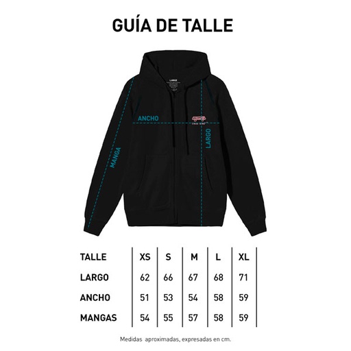 Estampa a un color en frente y espalda. Tinta con base soft. Frisa esmerilada, gamuzada y abierta. 50% Algodón 50% Poliéster. Capucha con cordón de ajuste. Bolsillo frontal. Etiqueta tejida de marca.