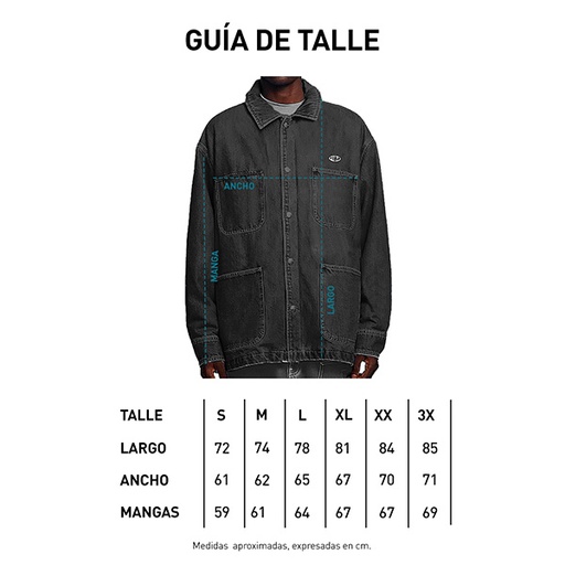 ◦ Camisaco denim pesado rígido 100% algodón. ◦ Prenda pre lavada. ◦ Relaxed Fit. ◦ Etiquetas tejidas de marca y talle. ◦ Botones de pasta personalizados. ◦ Bolsillos frontales. ◦ Parche bordado.